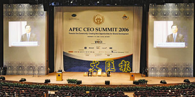 ■APEC會場場面盛大。圖為國家主席胡錦濤在致詞。 路透社
