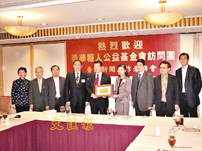 基金會訪華團於昨午抵港,行程的第一站便是到訪本報,期間受到本報社長張國良及總編輯王伯遙等負責人的熱情接待。到訪的基金會成員則有團長陳鄭伊梨,顧問黃根和,秘書長馬耀輝,以及團員林宏、洪林、吳木春、陳海燕等。