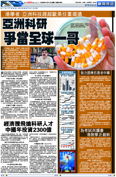 【本報訊】(記者 王新源)美國《時代周刊》認為亞洲經濟發展迅速,正在投巨資在科研,務求令亞洲成為下輪科學革命發源地。本報專訪了香港科技大學生物化學系副教授、中藥研發中心副主任高錦明博士,他提出另一番見解。他認為亞洲科研起步晚,仍與美國有一大段距離。美國的基礎研究起步早、資金充裕等優勢不易被超越,亞洲目前許多技術須依賴美國,因此亞洲科技獨立將是任重道遠。他還指出,如果發展自己的專利,達到科技自給自足,等於是在為未來慳錢。