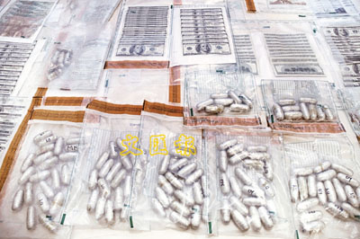 【本報訊】海關於半個月內先後在機場偵破15宗利用體內藏毒的跨國販運毒品案,拘捕15名非洲籍男子。據悉,被捕的「大胃王」於上機前,每人鯨吞逾百粒毒品包,其中一人更堪稱「運毒版小林尊」,個人獨吞共154粒毒包、重量達2.4公斤;當他們以體內藏毒方式冒死偷運毒品闖港時,被海關識破將他們拘捕送院,合共排出30公斤海洛英粒,價值1,400萬元。海關相信他們是受聘於跨國販毒集團,今次除了是體內運毒量最高紀錄外,亦是機場歷來最大宗體內運毒案。