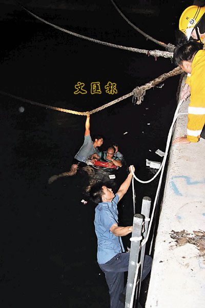 ■消防員合力搶救西祥街墮海男子。本報記者鄺福強 攝