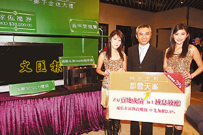 ■長實副首席經理(營業)黃思聰(中)再出新招谷都會天峰。 本報記者張偉民 攝