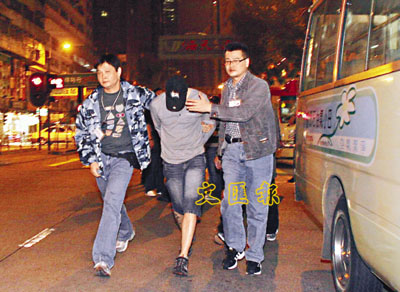 被捕姓彭兄弟分別41及38歲,兄長綽號「Camry」,其弟綽號「雞頭」,疑同是「和×堂」黑幫「四九仔」頭目。其他三人為姓鄺,43歲;姓馬,54歲及姓胡,37歲,涉勒索罪,他們被通宵扣查。