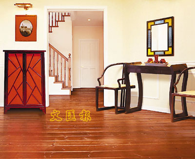 ■大廳一角。門口位置放置了一個木製鞋櫃,以及一張富於時代品味的小櫃子,可以放置心愛擺設。
