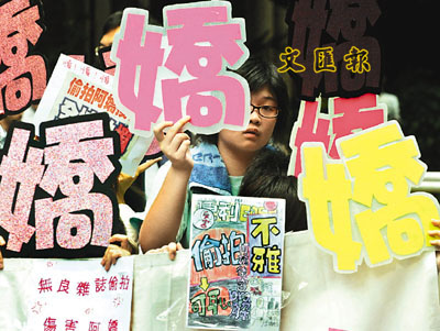 ■「婦女權益聯盟」抗議某周刊刊登女藝人更衣偷拍照。資料圖片