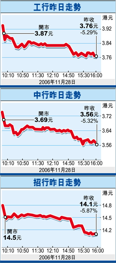 銀河基金分析師吳磊對本報表示,港滬兩市銀行股連動較強,今日招商銀行跌1.73%,工商銀行跌1.57%,中國銀行跌0.28%,而招行昨日已跌3.37%。受權重股下跌影響,今日盤間一度出現最低2016.47點。但由於金融股吸引力依舊,有部分機構在底部接盤建倉,因此今日滬指依然報收較高。但因滬港股市連動有滯後效應,明日A股銀行板塊可能會跌開,不排除滬股就此進入下行調整期。