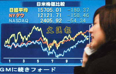 ■亞太股市昨日普遍下跌,其中日經平均指數曾跌逾200點,最後收報15855點,下跌30點。 路透社