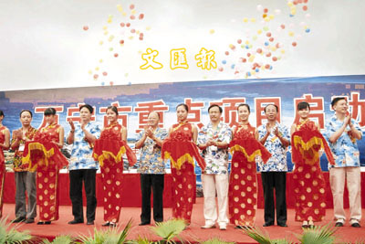 ■海南省領導為萬寧市10大項目啟動剪綵。 本報駐海南記者 攝