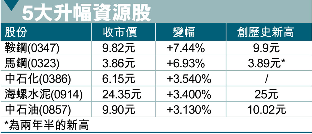 5大升幅資源股 (圖)