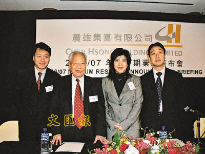 ■左起:震雄執行董事吳漢華、主席蔣震、蔣麗婉及鍾效良。 本報記者李永青 攝