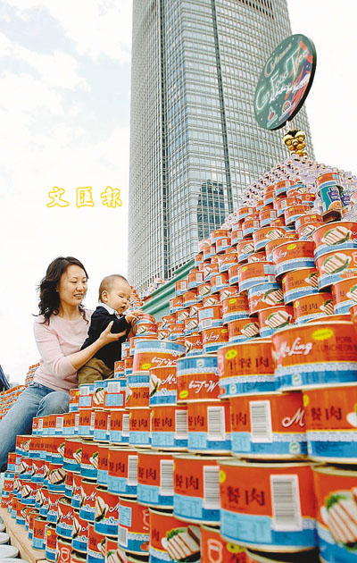 為了讓三餐難繼的窮人歡度一個溫飽的聖誕節,聖雅各福群會眾膳坊昨在中區國際金融中心第2期對開草地,用3萬多個罐頭及食品堆砌成一棵15呎高的罐頭聖誕樹,吸引熱心市民前來捐款。本報記者李志樑 攝