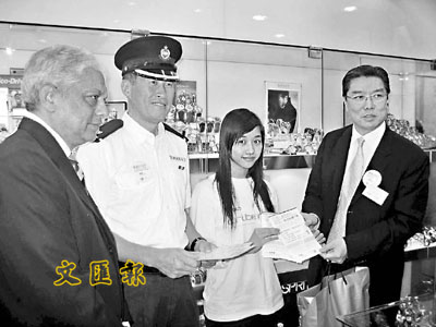 ■警方及優質旅遊服務協會向尖沙咀區商戶派發傳單,呼籲他們舉報非法招徠的行為。本報記者劉珮淳 攝