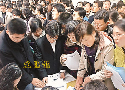 迄今四川最大一場畢業生雙選會1日在四川大學拉開帷幕,來自全省各高校的3萬多名大學畢業生湧入四川大學體育館。不少單位的高「門檻」讓畢業生們吃不消,而一家政公司卻因1,200至3,000元的較高薪水成為大熱門,一天之內收到200份求職信,其中包括15名碩士研究生。