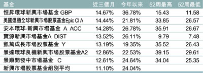 今年5月股災後,市場對新興市場態度變得保守,雖然隨著美股迭創新高,許多新興國家也跟著重新站回五月高點,摩根士丹利新興市場指數11月底以863.13點創下今年新高,國際資金在5、6月連續2個月淨流出後,7月底開始,數據顯示11月上旬總共有14.03億美元(約109億港元)新增資金流向新興市場股票基金。
