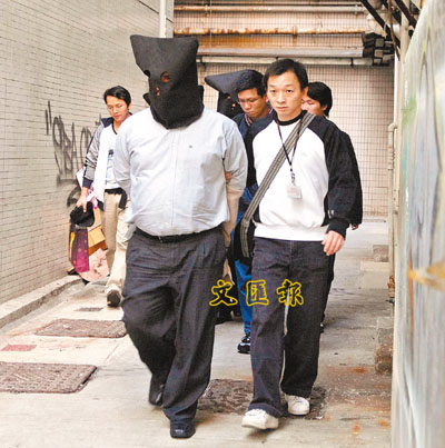 ■在尖沙咀被捕的秘魯大盜,由探員帶返警署。