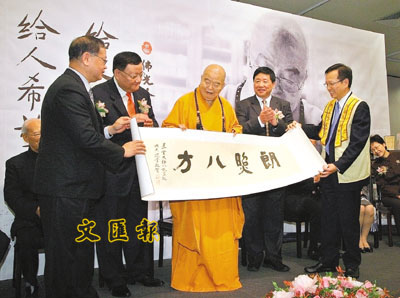 專程來港出席是次活動的國家宗教局局長葉小文則借星雲大師07年的春聯墨跡「諸事圓滿」,指明年是豬年,諸事圓滿,即如香港回歸10周年,而內地將召開十七大,和諧社會建設會有更好的進展;他還祝願明年兩岸三通諸事圓滿,及香港回歸10周年「事事如意」。