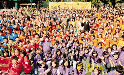 ■李國章與嘉賓及在場千名青年義工大合照。 本報記者李志樑 攝