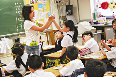 ■由天津來港交流的李欣老師在課堂上與同學互動教學。