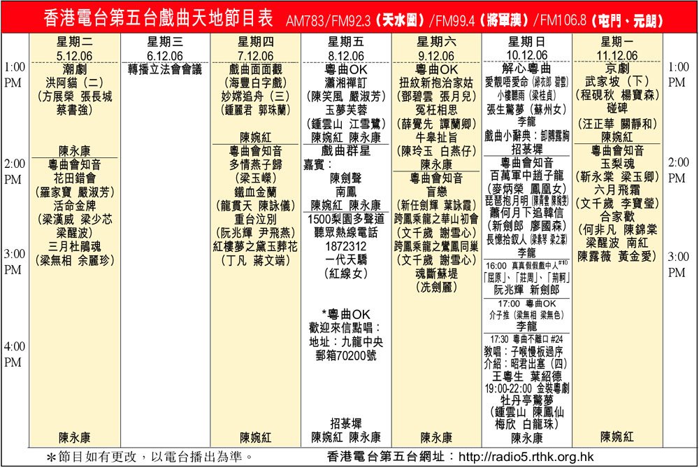 香港電台第五台戲曲天地節目表