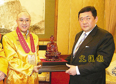 香港回歸9年,社會穩定、經濟發展,我們希望中蒙佛教文化在香港建起互動的平台,這對中蒙人民相互了解及友誼有著重要的作用。所以我們計劃與蒙古佛教界按9月份初步策劃,在烏蘭巴托市中心鑄造一尊全蒙古國最大露天釋迦牟尼佛銅像,為中蒙佛教文化歷史上偉大的一頁做出貢獻。為祈願中蒙人民生活快樂、社會和諧、國泰民安,香港佛教文化產業向總理恩赫包勒德贈送一尊琉璃釋迦牟尼佛像。