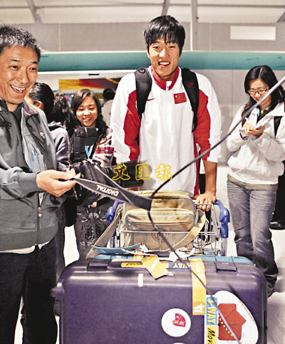 ■劉翔抵達多哈,成為眾記者追訪的目標。 新華社