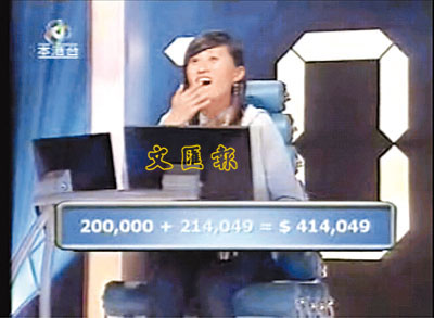 ■韓燕雯在比賽中贏得40多萬元獎金,滿臉驚喜。電視圖片