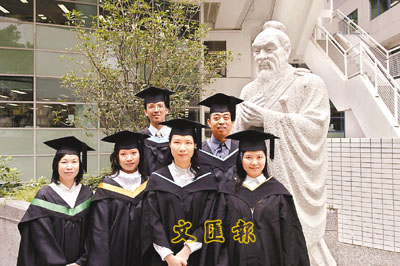 ■苦讀七年的劉瑞冰(前排左一)及張國輝(後排左一)終於一償心願穿上畢業袍。