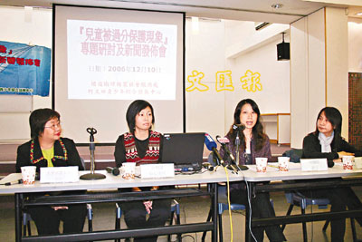 循道衛理楊震社會服務處與何文田青少年綜合發展中心向參加「兒童獨立自顧獎勵計劃」的6至11歲兒童的家長,發出212份問卷調查,發現有7成家長事事為子女代勞,或安排傭人完成,使子女無從或無需學習各種生活技能。這些家長中,31%的孩子為獨生子女,52%父母為雙職,單親佔14%,大部分受訪家庭均僱有傭人。據指,所謂「過份保護」的徵兆包括出現一種束縛的關係、幼稚化看待孩子、不當地試著控制孩子周圍環境等。調查者建議,家長應學習有步驟地「放手」,並持之以恆。
