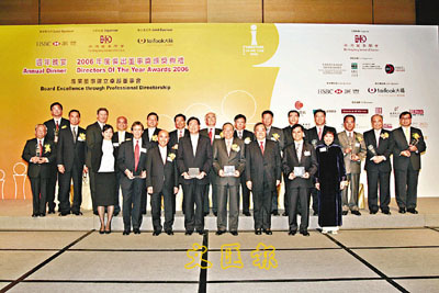 大福證券今年應邀成為香港董事學會「2006年度傑出董事獎」的聯合贊助商,該集團之董事總經理及行政總裁黃紹開及執行董事兼營運總監李耀榮與一眾得獎者合照。