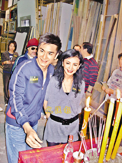 【本報訊】(記者 許紹基)無線新劇《古靈精探》的一眾演員,郭晉安、郭羨妮、馬國明和曾華倩昨日齊集將軍澳電視城,為新劇拜神祈求拍攝順利。一對緋聞男女馬國明和曾華倩被安排一齊上香,兩人之眼神互相交流,即被記者笑指兩人為拜堂成親。