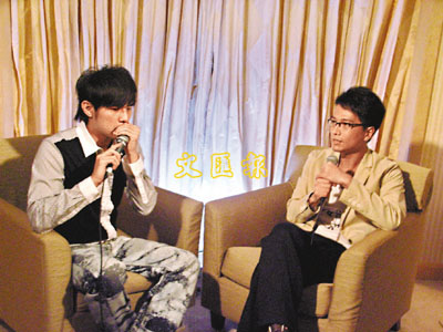 ■周杰倫接受有線專訪時表演「口技」。