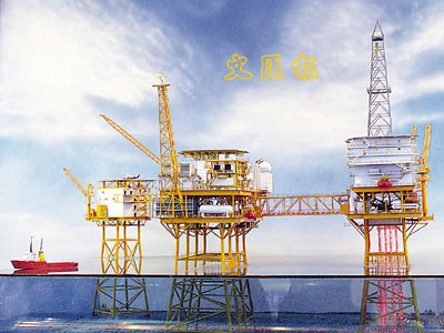 ■是次未能登上中海油崖城油台,惟有觀看其模型「望梅止渴」。 本報記者朱小璇 攝