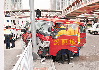 【本報訊】3名便衣警員,昨午在天水圍駕駛客貨車調查一宗毒品案時,客貨車在轉彎時失控撞向路邊燈柱,3警全部浴血受傷,經送院救治,其中一警需留醫,警方正調查意外原因。