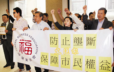 ■10多名殯儀業代表昨日向食環署遞交請願信,希望當局關注世界殯儀館可能壟斷紅磡區殯儀館的問題。 本報記者聶曉輝 攝