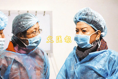 ■包陪慶(右)向醫師詢問白內障患者手術情況。