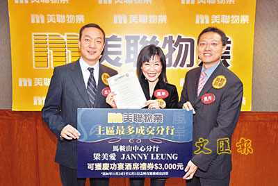■長實郭子威(右)出席美聯為「嵐岸」特設「成交之王」獎勵計劃。