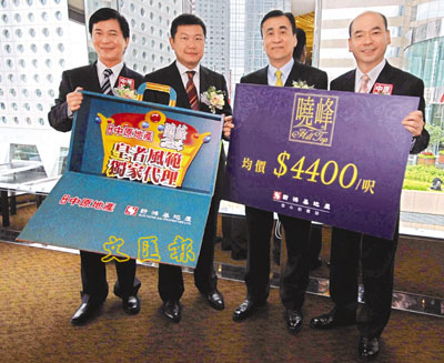 ■中原地產再度獲新地委託獨家代理「皇府山曉峰」,並贈發展商以「千金寶箱」預祝銷情報捷。