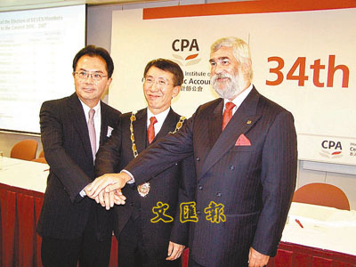 ■方中(中)任新一屆香港會計師公會會長。本報記者譚可盈 攝