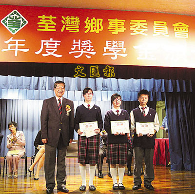【本報訊】(記者 鄭群)荃灣鄉事委員會日前假荃灣雅麗珊社區服務中心禮堂,隆重舉行2006年度獎助學金頒發典禮,向荃葵兩區38間中學114名品學兼優中五學生,以及6名考上大學的原居民子弟頒發獎狀及獎學金。荃灣鄉事委員會主席鍾偉平勉勵學子繼續努力向學,他日學業有成,成為社會的棟樑,為香港作一番貢獻!荃灣鄉事委員會2006年度獎學金頒獎典禮特邀荃灣民政事務專員劉陳淑珍、荃灣區議會主席周厚澄、荃灣葵青區總學校發展主任劉李美華蒞臨主禮。