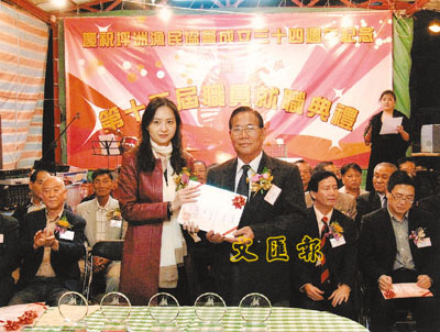 林偉強、周淑儀分別致辭時,讚揚坪洲漁民協會歷史悠久,對社區服務貢獻良多,在會長陳帶根帶領下,團結漁民和睦相處,為坪洲建設和諧社區。