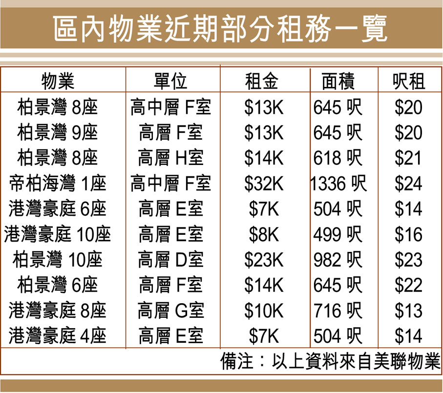 區內物業近期部分租務一覽 (圖)