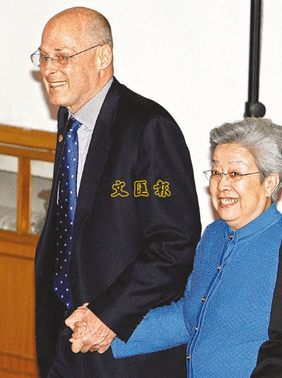 ■吳儀與保爾森在會議結束後,手牽手步入記者會現場,氣氛融洽。 法新社