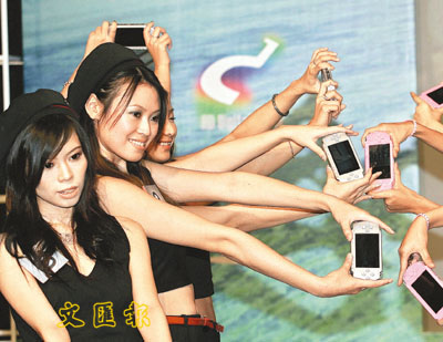 ■「PlayStation Girl超女擂台」打機皇后總決賽,靚女展示PSP產品。 本報記者劉國權 攝