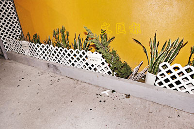 ■兩名男子遇襲現場,花槽欄柵亦被壓毀。