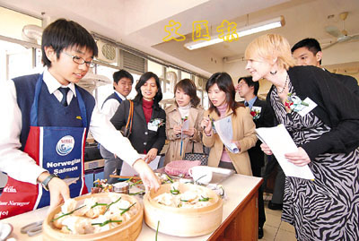 【本報訊】將軍澳寶覺中學日前舉行的挪威三文魚烹飪大賽總決賽,六隊參賽隊伍爭奪「天才小廚師」名銜及到訪挪威三文魚之鄉的機會。比賽最終由何東中學學生所創的「三文魚狂想cook」,以創新及色香味的優點奪得冠軍。評判之一的挪威海產外貿局中國市場總監歐詩娜亦大讚學生的創意十足。
