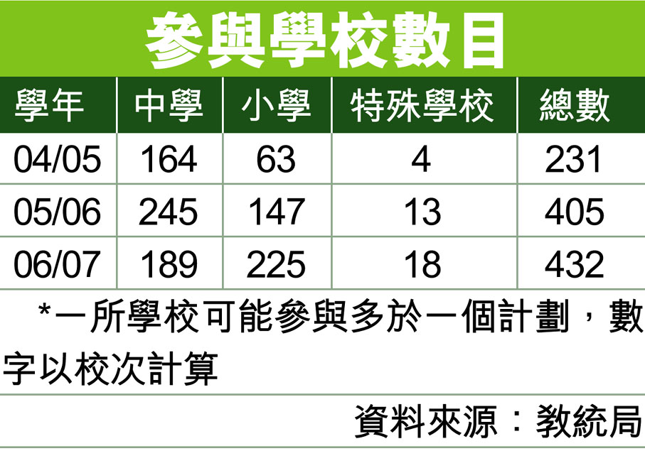 *一所學校可能參與多於一個計劃,數字以校次計算