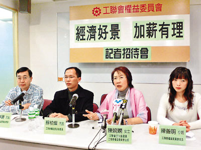 ■工聯會立法會議員陳婉嫻(右二)認為,過去多年凍薪減薪,明年打工仔加薪7.5%不算過分。本報記者朱樂汶 攝