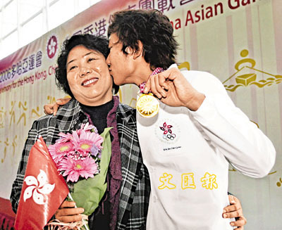 【本報訊】(記者 郭思華)香港代表團凱旋回歸,除了站在台上的眾位運動員喜上眉梢外,台下運動員的家人亦同樣欣喜。首次參加亞運就奪得男子40公里場地記分賽金牌的張敬煒,他的媽媽就直言當晚看到賽果全家都高興得流淚,她表示:「雖然看見兒子練習辛苦也會心痛,但看見他取得好成績亦替他高興。」