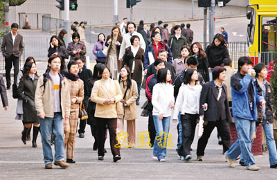 ■本港就業率節節上升,失業率跌至6年來低位。圖為中環白領一族匆匆上班。 資料圖片