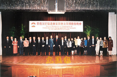 本會於十一月二十八日假香港君悅酒店隆重舉行祝賀會友榮獲勳銜晚會,並由中央駐港聯絡辦高祀仁主任主持致送紀念品儀式。出席者包括政府官員、中聯辦領導、海聯會理事、人大代表、全國政協委員、各社團首長及二十多國駐港總領事等。與會嘉賓均佩帶勳章出席,閃閃生輝,喜氣洋溢,情況熱鬧。